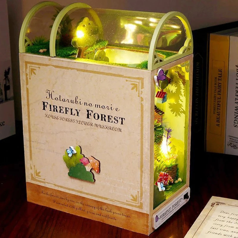 Bookshelf Set Mini Doll House DIY Book Nook Kit 3D Puzzle Assembly Building Model Insert Decor With LED Lights Wooden Craft Gift