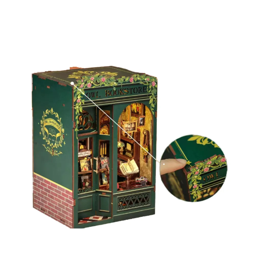 DIY Book Nook Insert Kits Wooden Doll House Building Kit Magic House Casa Bookend With LED Lights Bookshelf Home Decoration Gift