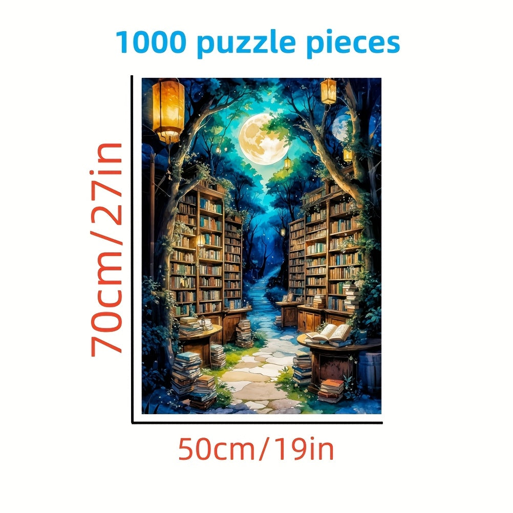 1000pcs Book Nook Puzzle - Magical Library Challenge with Bookshelves, Lanterns & Moonlit Sky - Large Jigsaw for Adults, Families, Book Lovers - Educational Brain Teaser Game & Home Decor - Perfect Gift for Readers & Puzzle E