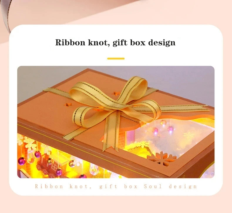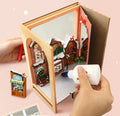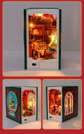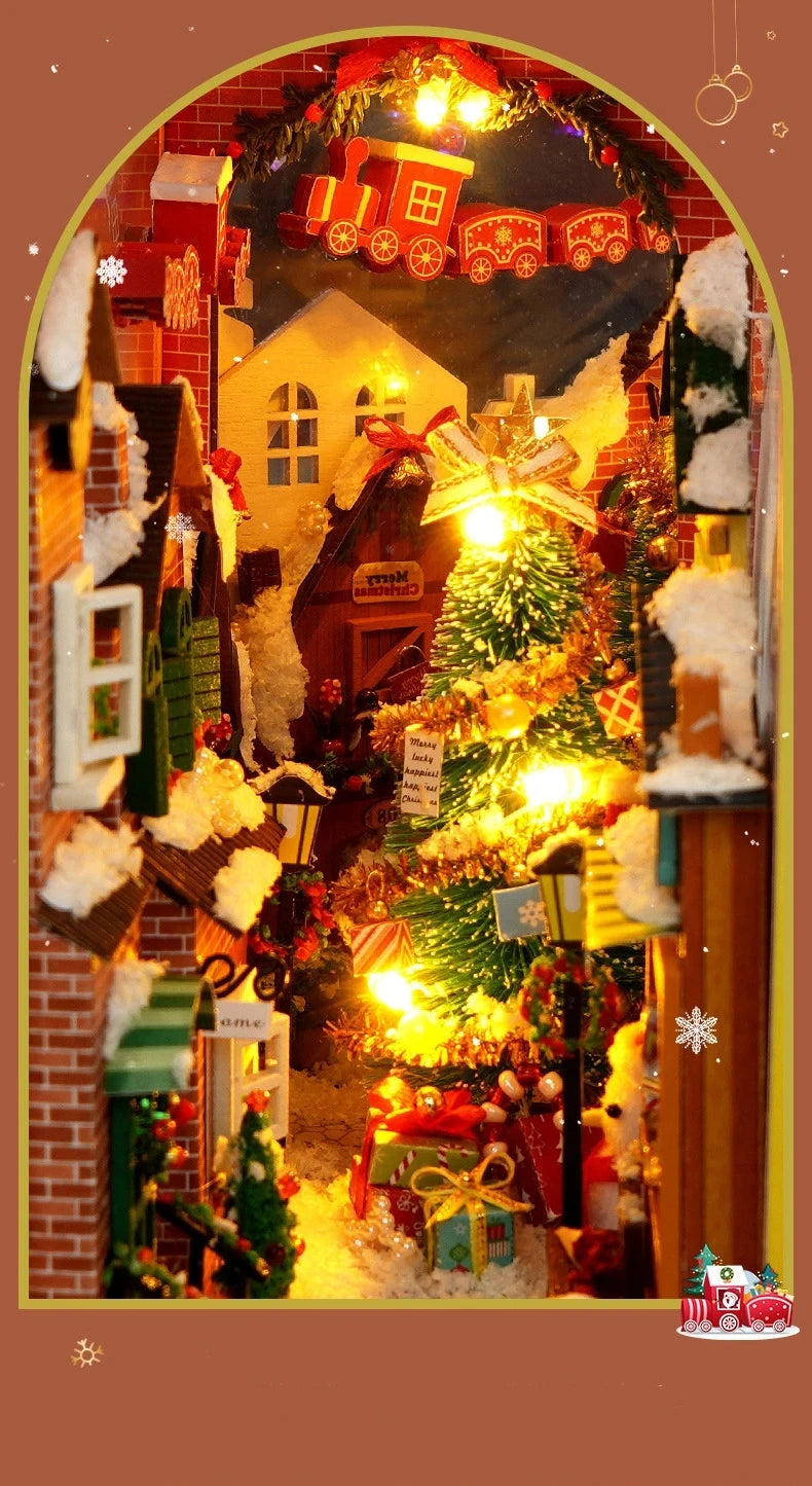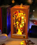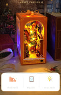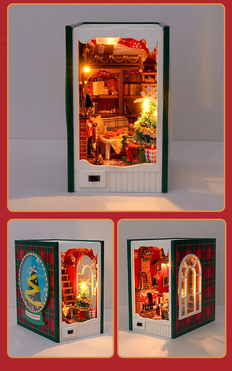 Book Nook Miniature DIY Hut Christmas cabin Houses Bookstand Doll House Creative Puzzle Bookshelf Insert With Touch Cover