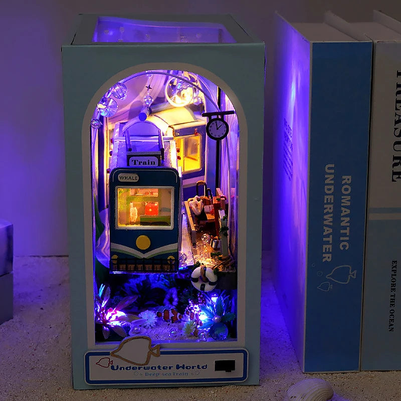 Bookshelf Set Mini Doll House DIY Book Nook Kit 3D Puzzle Assembly Building Model Insert Decor With LED Lights Wooden Craft Gift