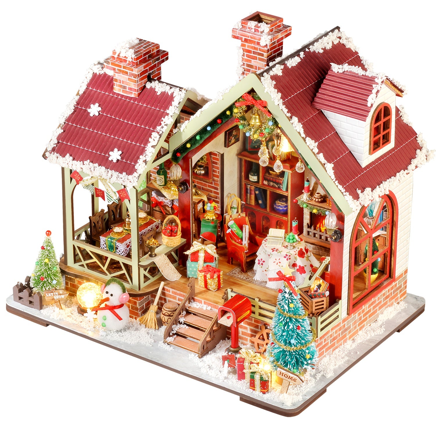 DIY 3D Book Nook House Standing Model Kit - Christmas Themed with Gingerbread House Design, Interlocking Book Pages, Miniature Furniture & Figurines, Charming Desktop Decoration for Shelf Display, Birthday & Holiday Gift (No