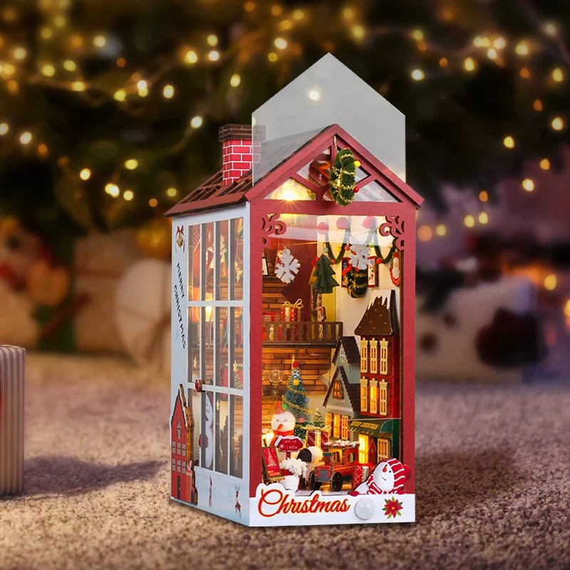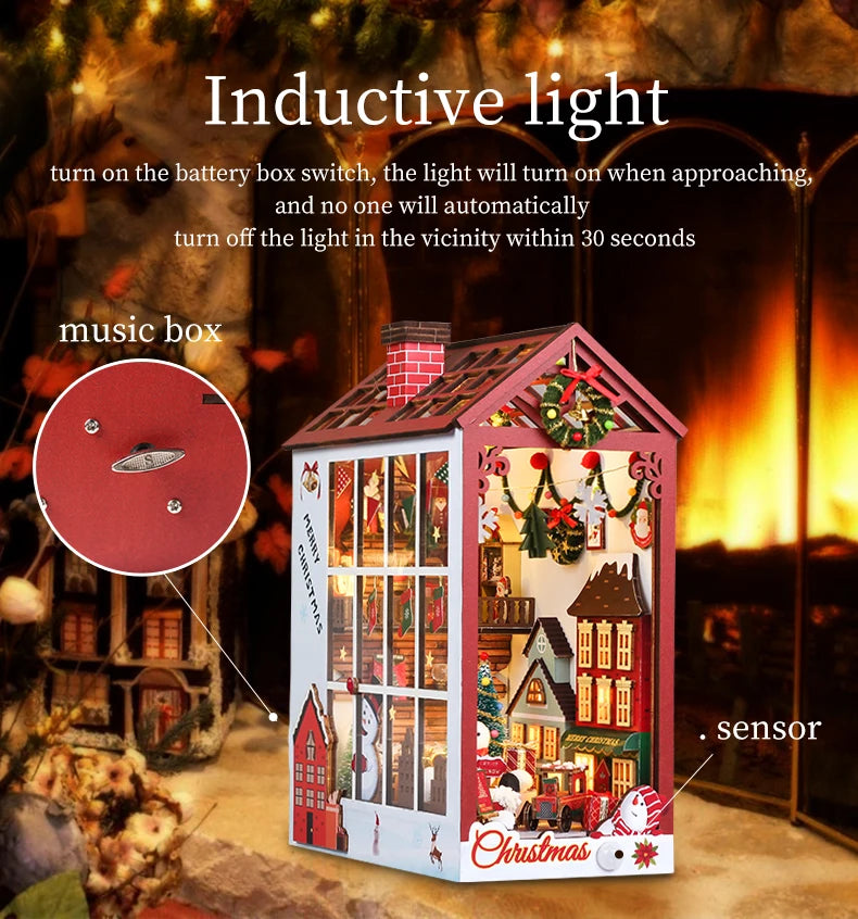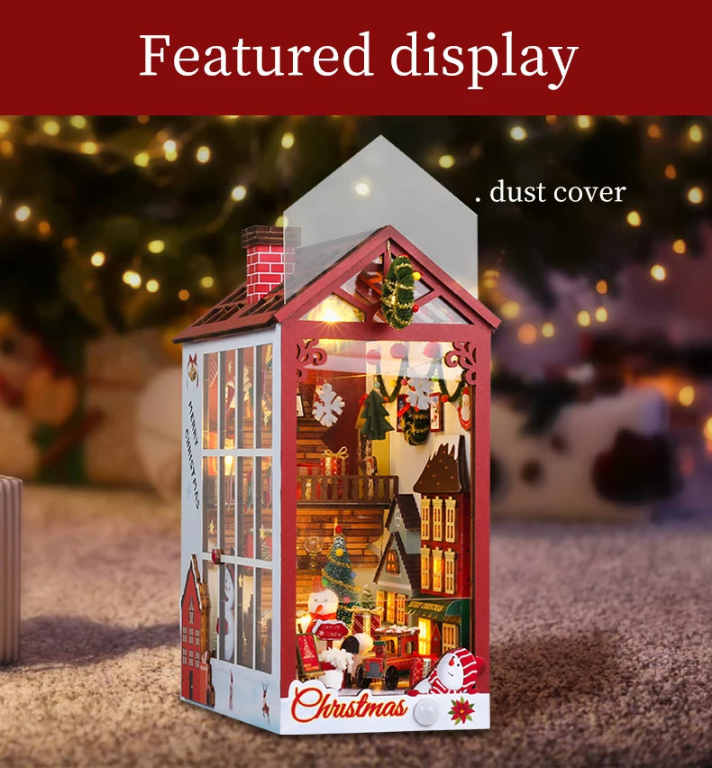 DIY Book Nook Kit Miniature Dollhouse Kit For Adult and Teens Christmas Gift Booknook Bookend Alley Model Build with Dust Cover