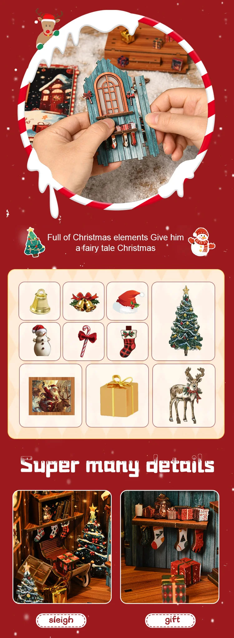 DIY Book Nook Kit Miniature Wooden Dollhouse with Light Bookshelf Insert Decoration Model for Bookshop Memories Christmas Gifts