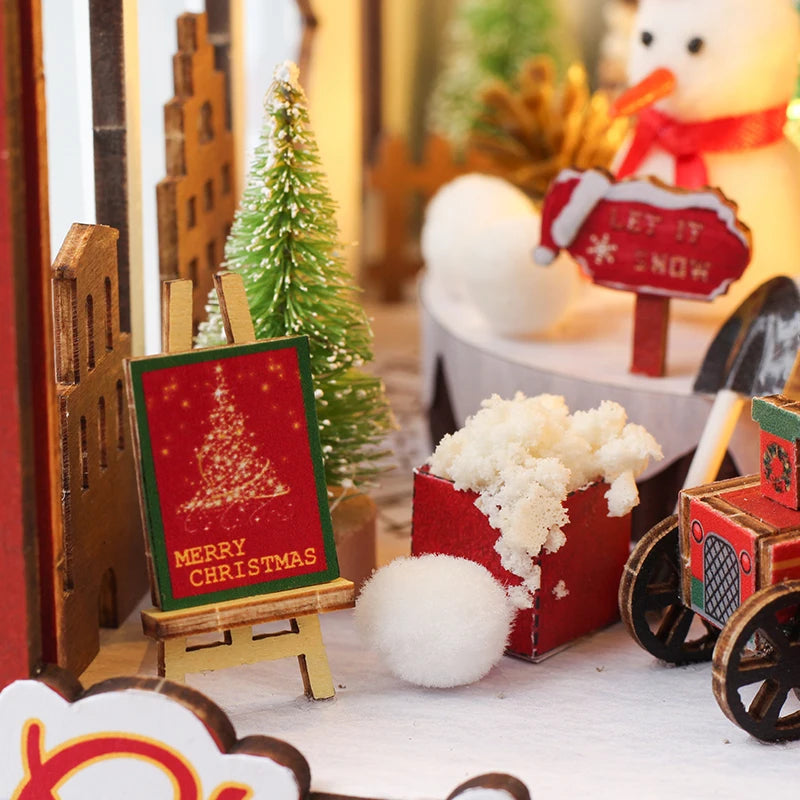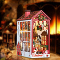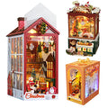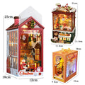 DIY Book Nook Wooden Christmas Doll House Kits Bookshelf Insert Decor With LED Light 3D Puzzle Assembly Model Bookend Xmas Gifts