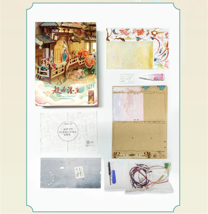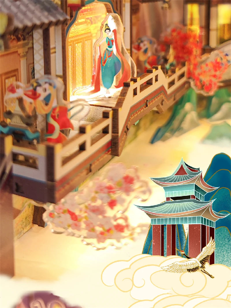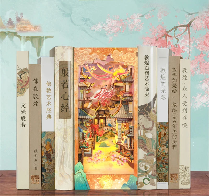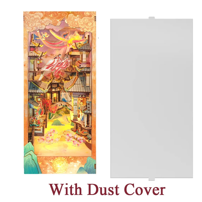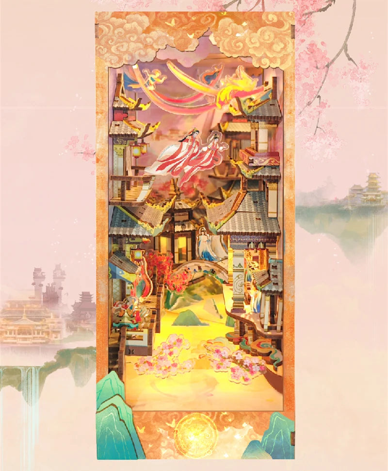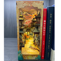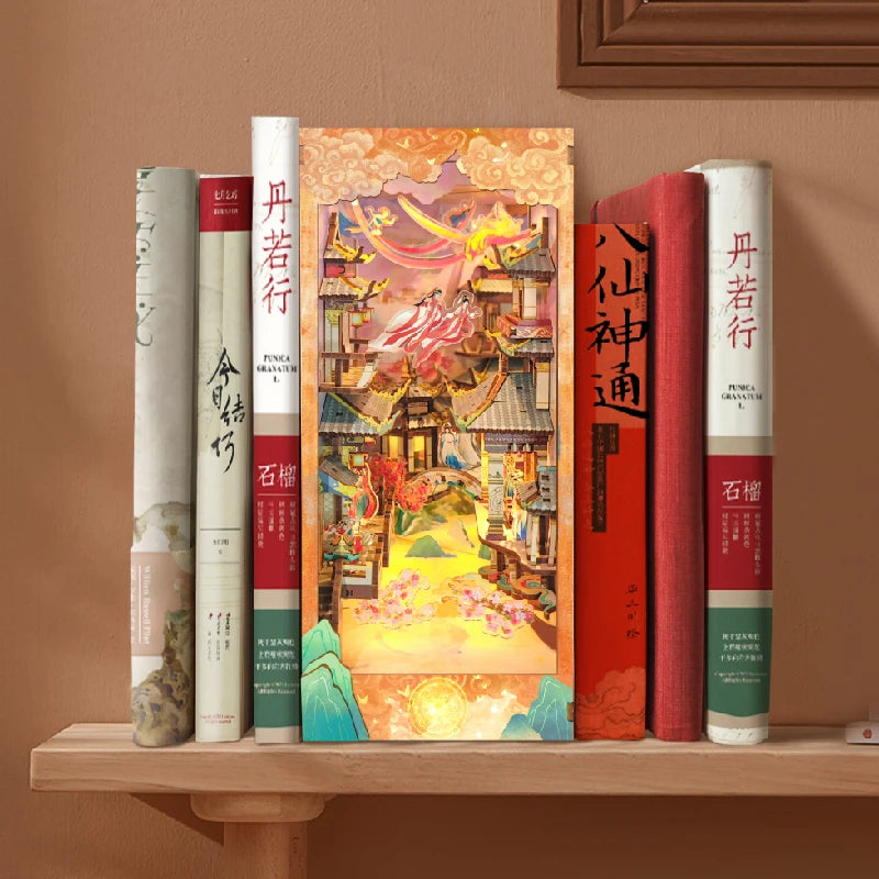 DIY Wooden Book Nook Chinese Mythical Story Bookend with Light 3D Puzzle Bookshelf Assembly Bookend for Adults Birthday Gifts