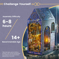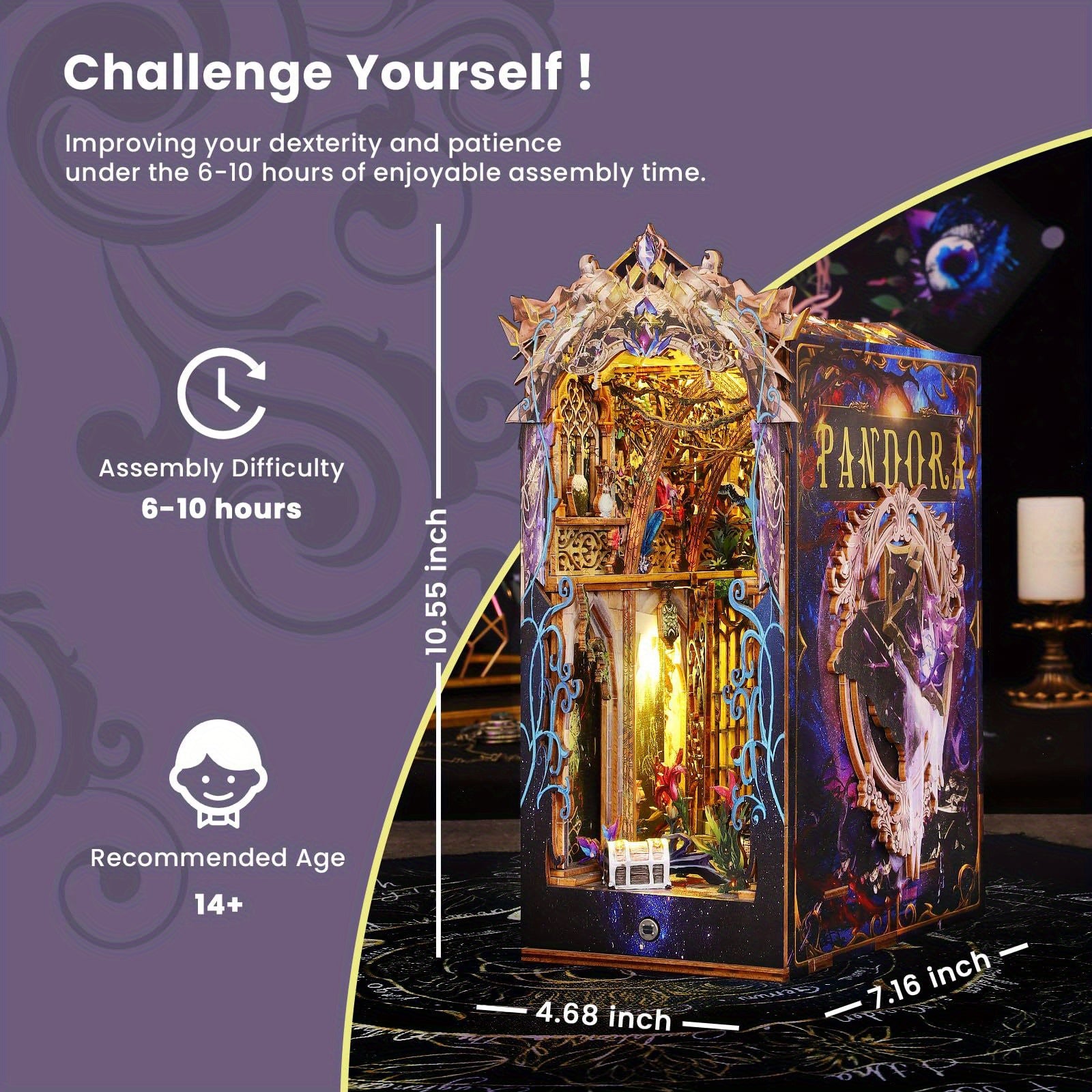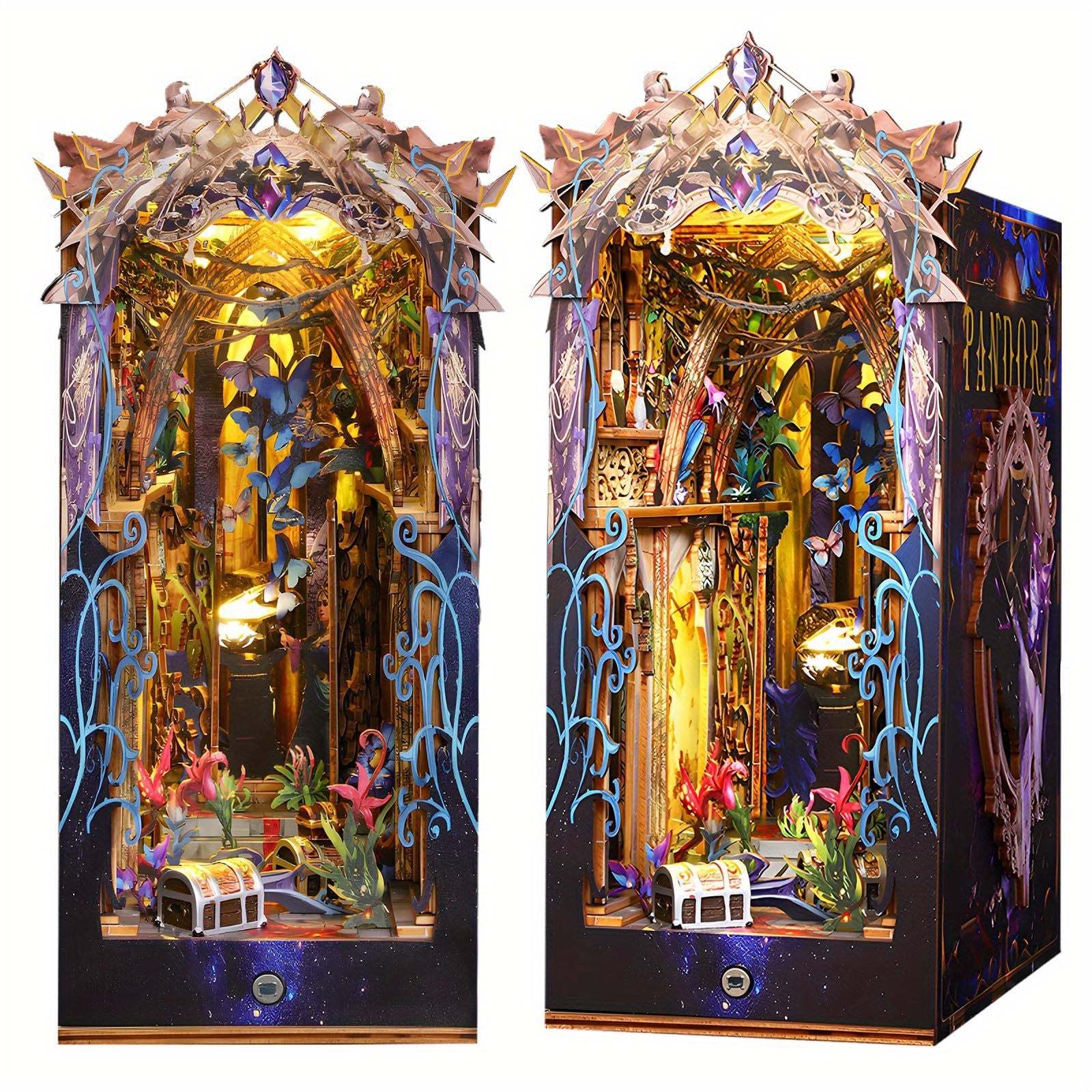Marycele Book Nook Kit for Adults Teens, 3D Puzzles for Adults Bookshelf Decor, Wooden Booknook with Sensor Light, DIY Kits for Adults Crafts, Christmas Birthday Gifts for Him Halloween Christmas Gift