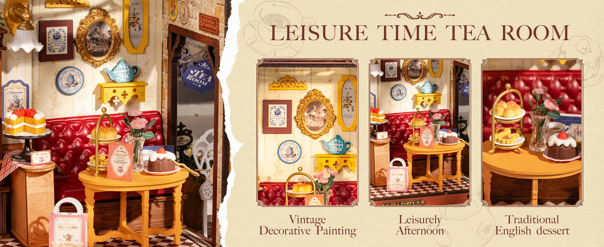 Robotime Rolife Leisure Time Tea Room DIY Miniature Dollhouse Kit Crafts Hobbies Amazing Gift for Women Children DG171